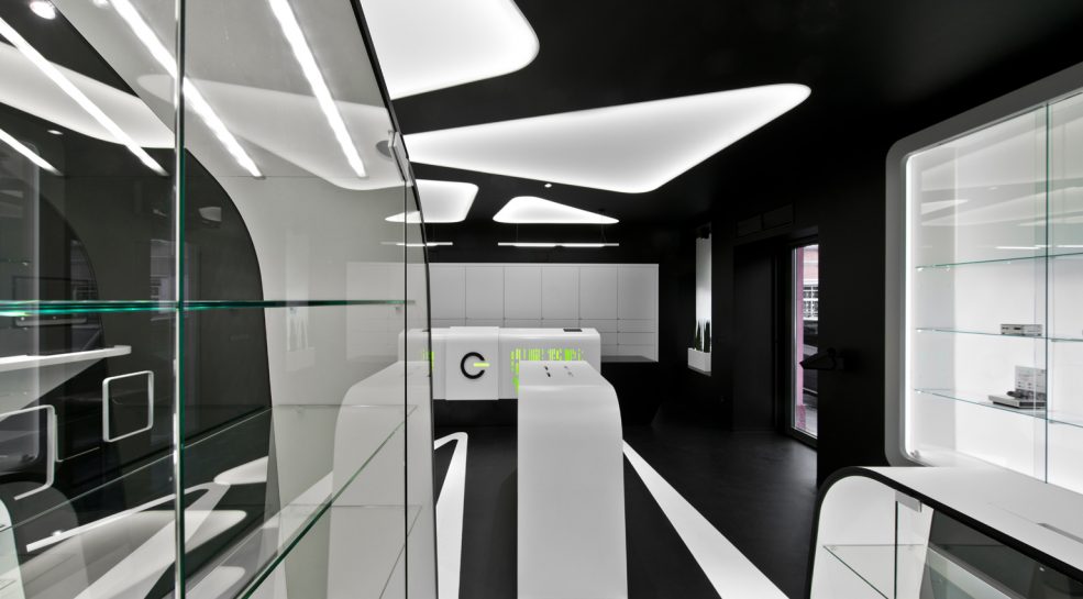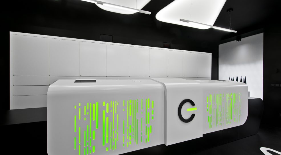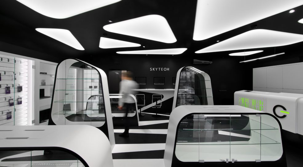 Kompiuterinės ir skaitmeninės technikos naudotojams padovanojome futuristinę laiko kapsulę, nukeliančią žingsneliu į rytdieną. Siekiant sustiprinti futuristinę interjero stilistiką, pagrindiniams interjero elementams naudotos geometrinės formos. Baldai, sienos, grindys kontrastų pagalba vizualiai persipina ir sukuria tęstinumą, kur išnyksta realus erdvės ir mąstelio suvokimas.
